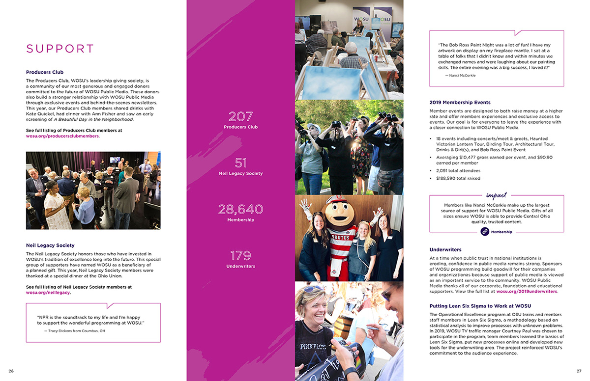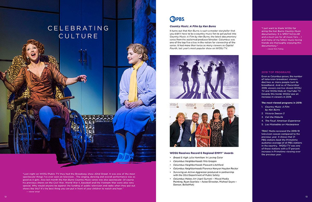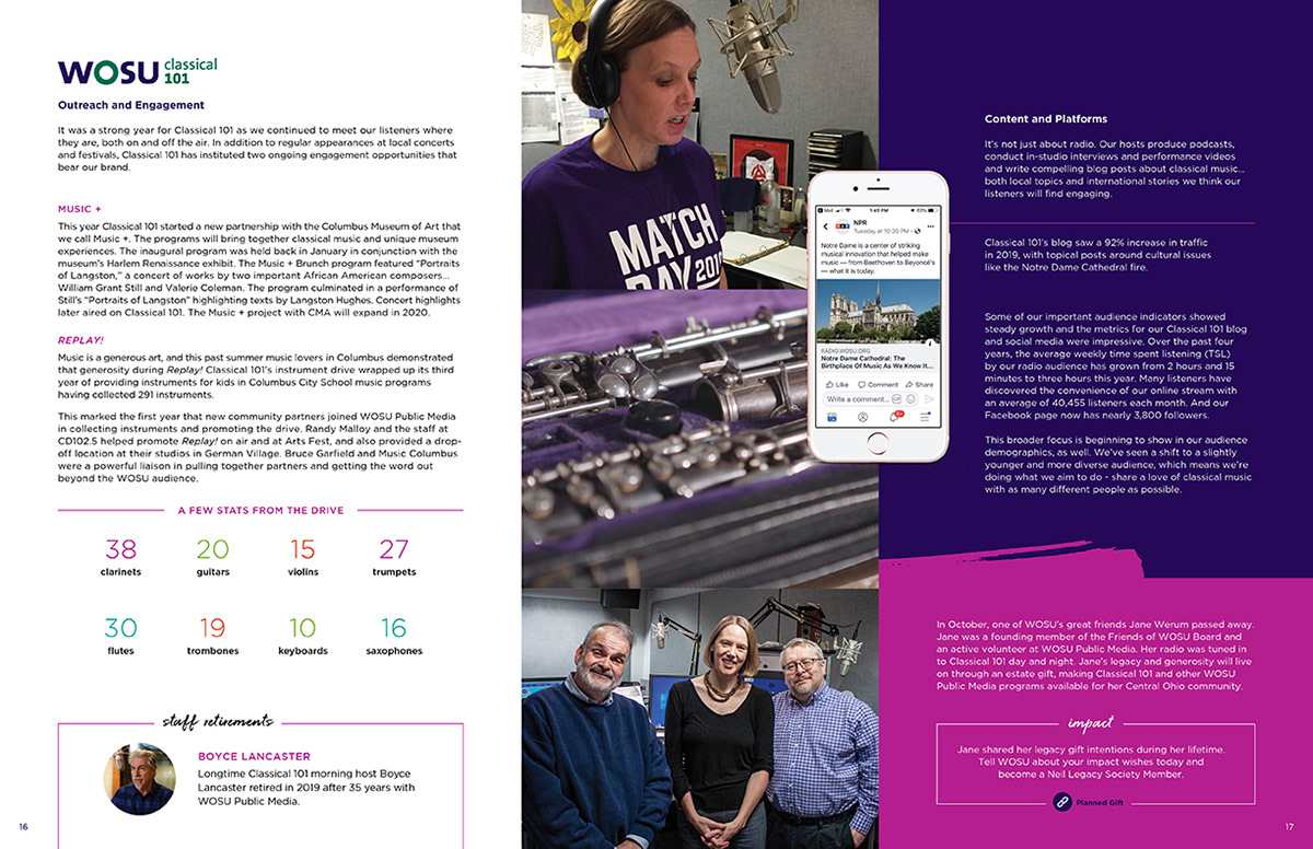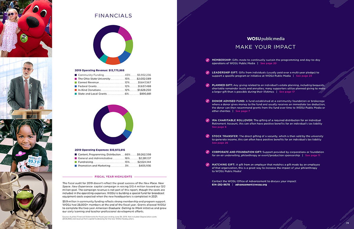 An annual report highlighting a year's worth of accomplishments, community events, and program initiatives at WOSU Public Media - The Ohio State University's public media station.