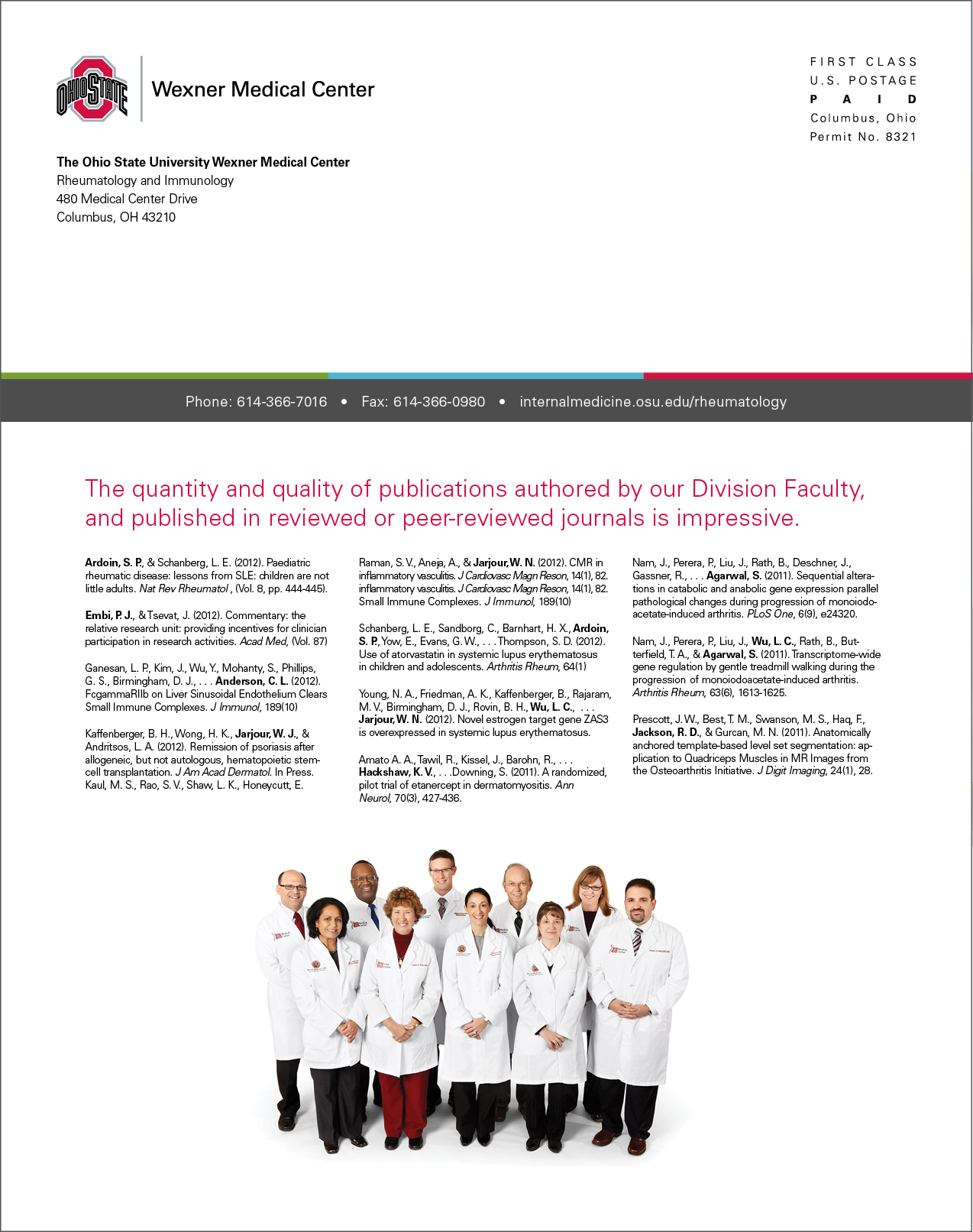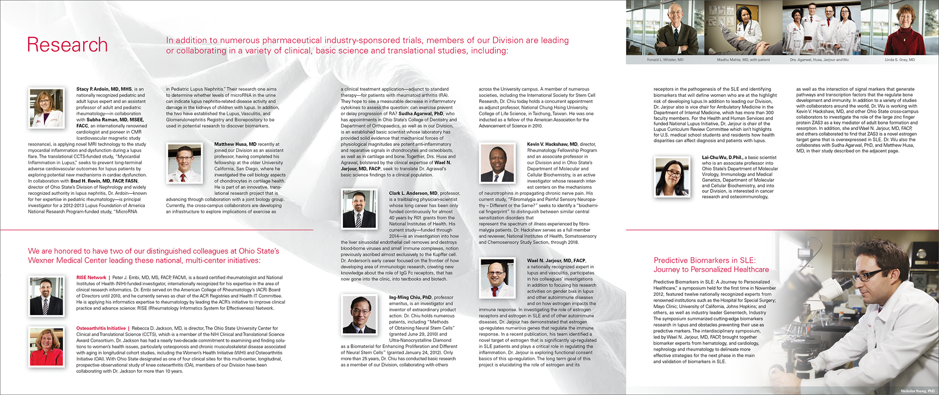 An overview brochure highlighting the research accomplishments and program initiatives of the Division of Rheumatology and Immunology at The Ohio State University Wexner Medical Center.